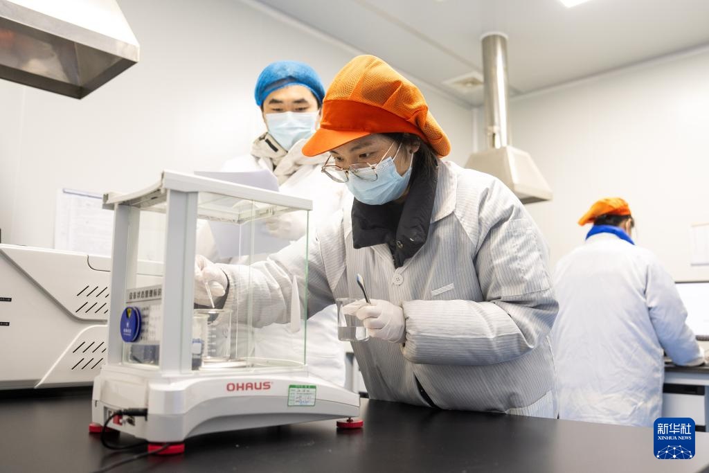 1月14日,在坐落常德高新区的湖南有美生物科技有限公司,检测工作员在检测医用凝胶原材料蛋白质含量。